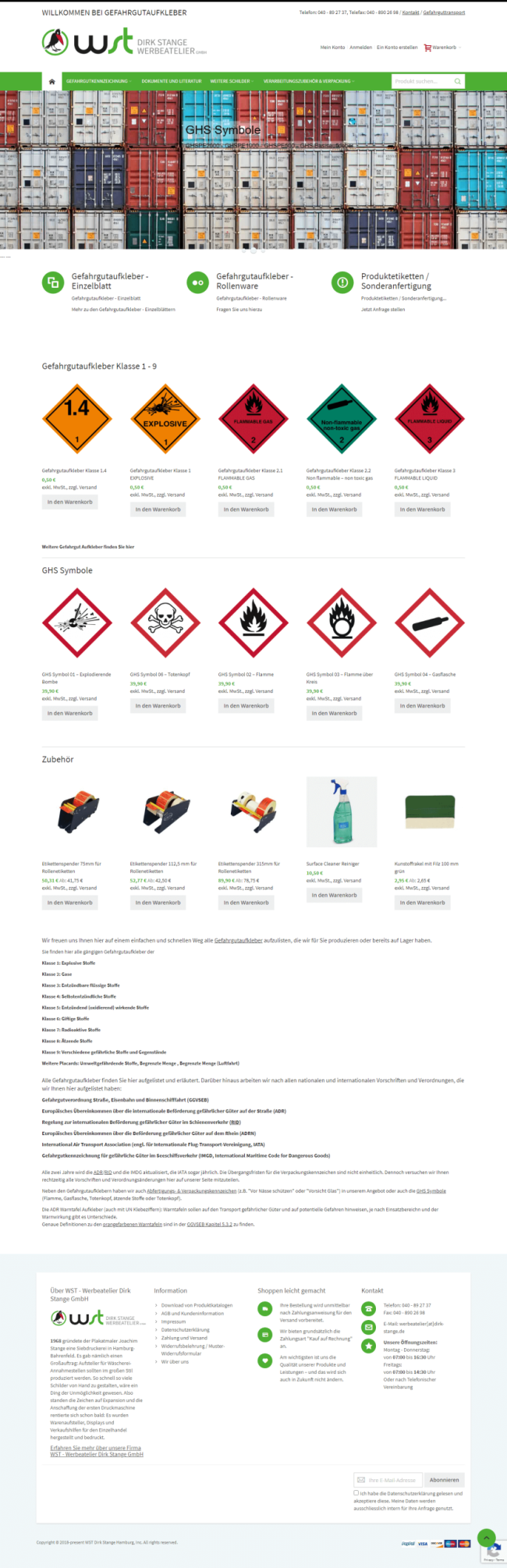 Gefahrgutaufkleber we created an online shop for Dangerous goods based on Magento 2 The aim was to present the high quality Dangerous goods for the customer in a correspondingly valuable way and to bring the customer quickly to the desired product purchase using the new search function / menu navigation / navigation. The one page checkout with a variety of payment methods.