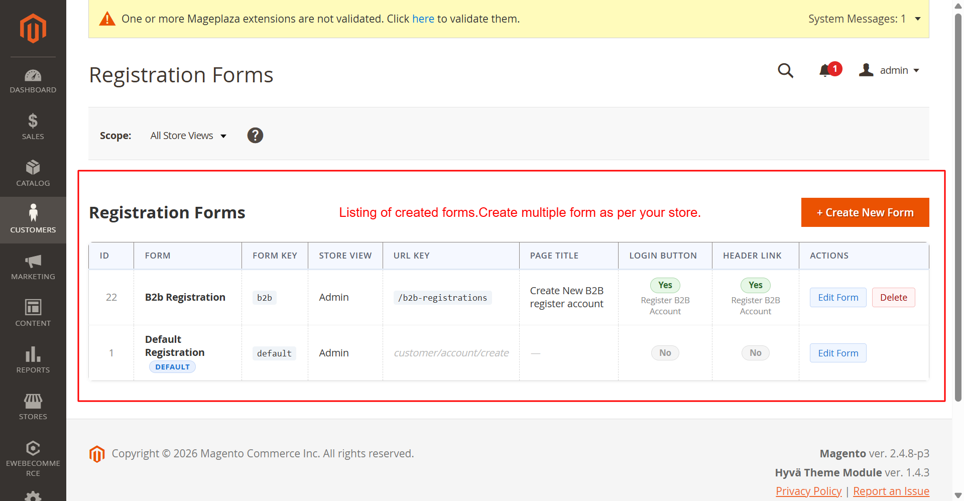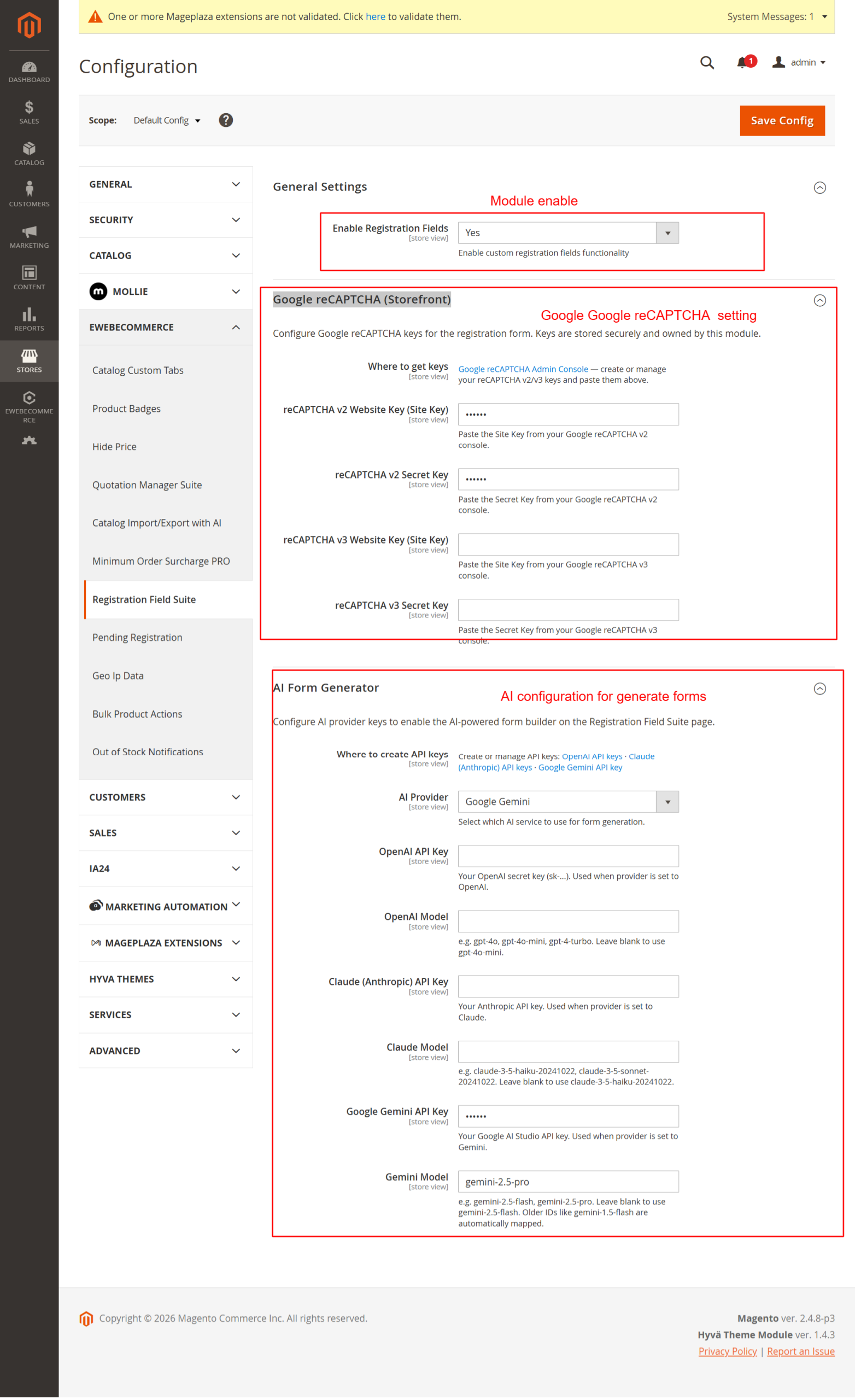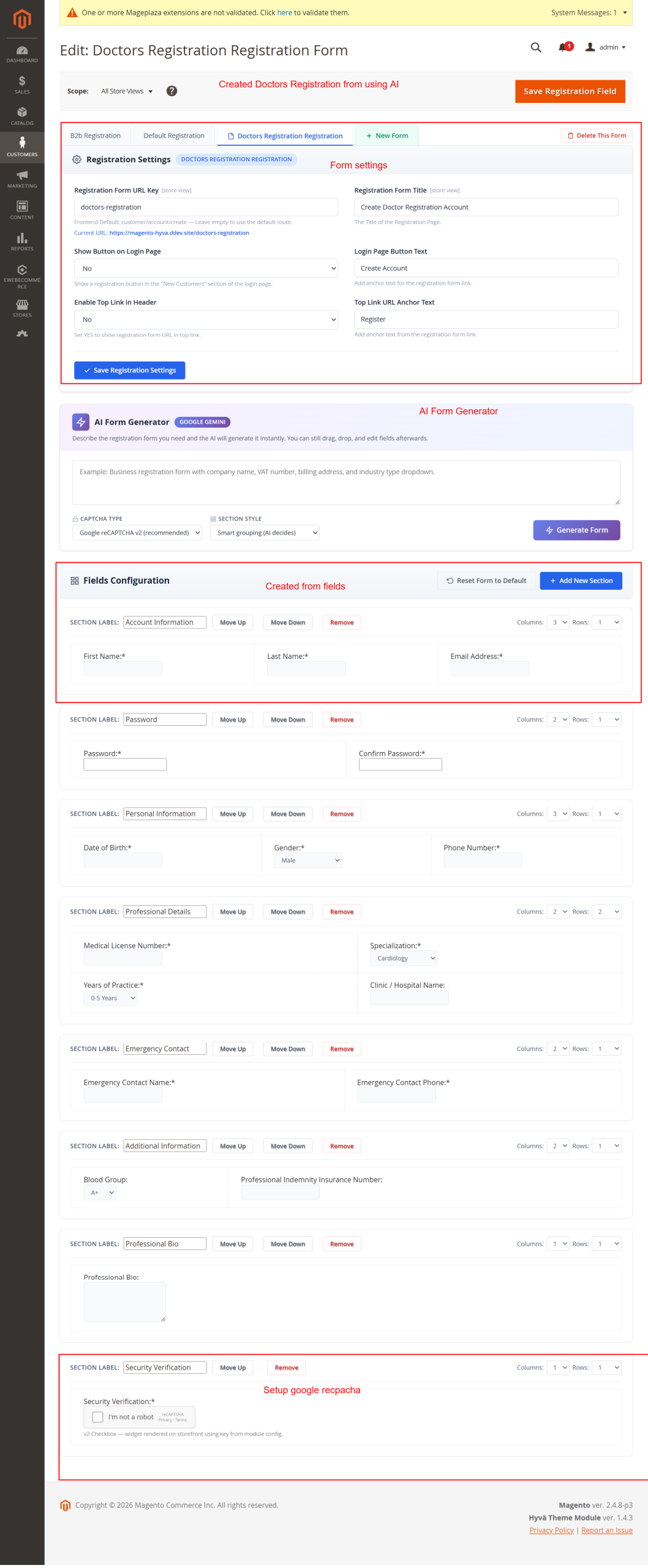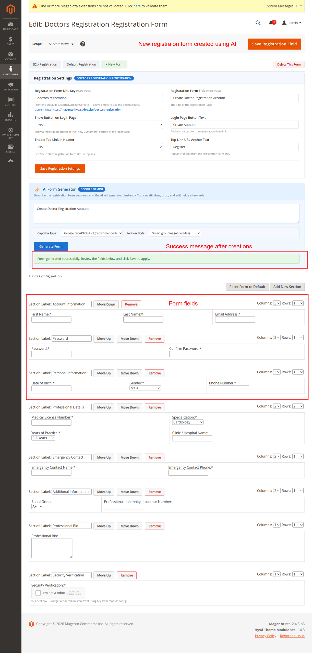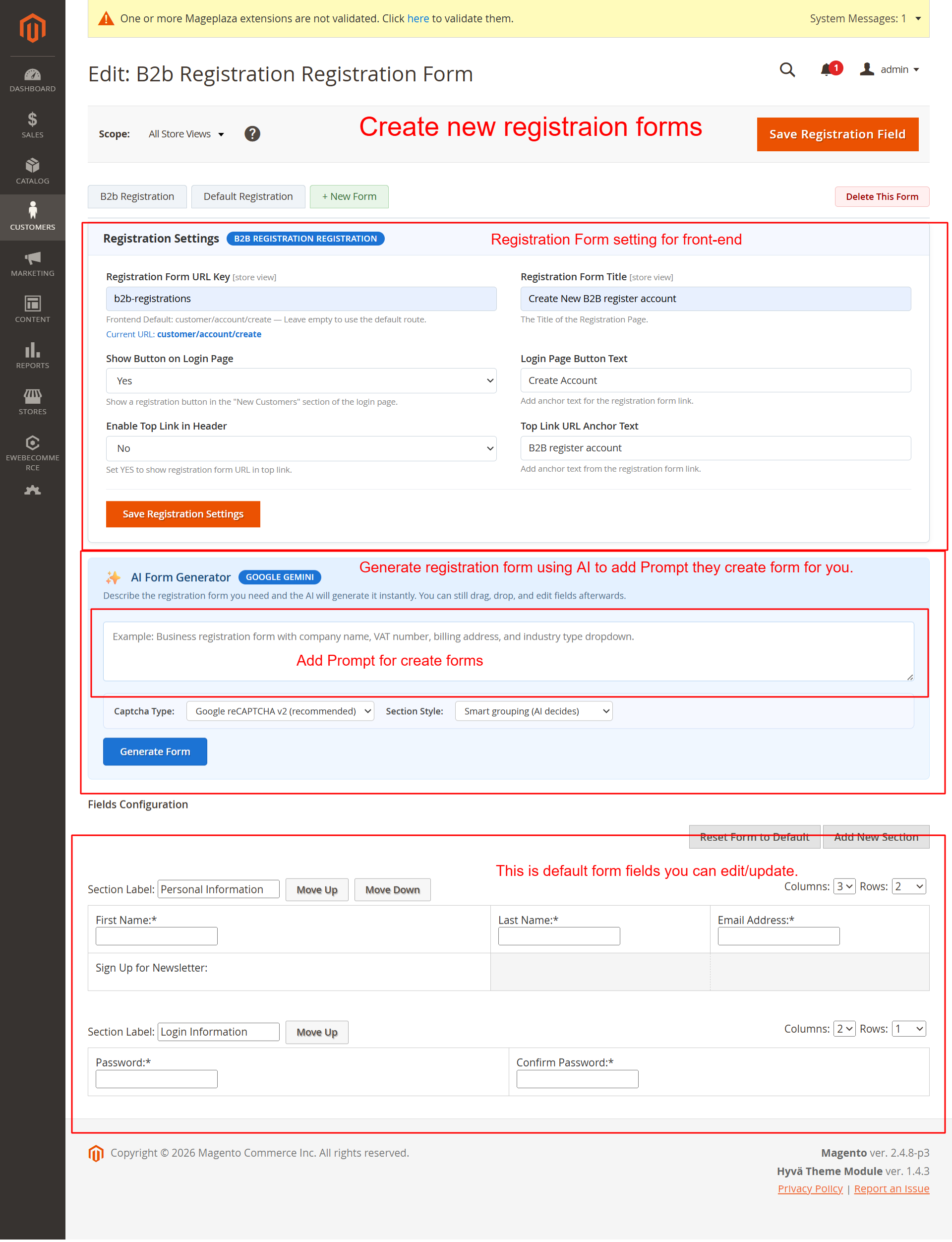 The Ai Registration Field Suite enhances your Magento store by simplifying and improving the customer registration experience. Offering theme compatibility, multi-store configurations, and extensive admin management features, this extension is an indispensable tool for any Magento 2 store aiming for smoother, efficient user registration processes.