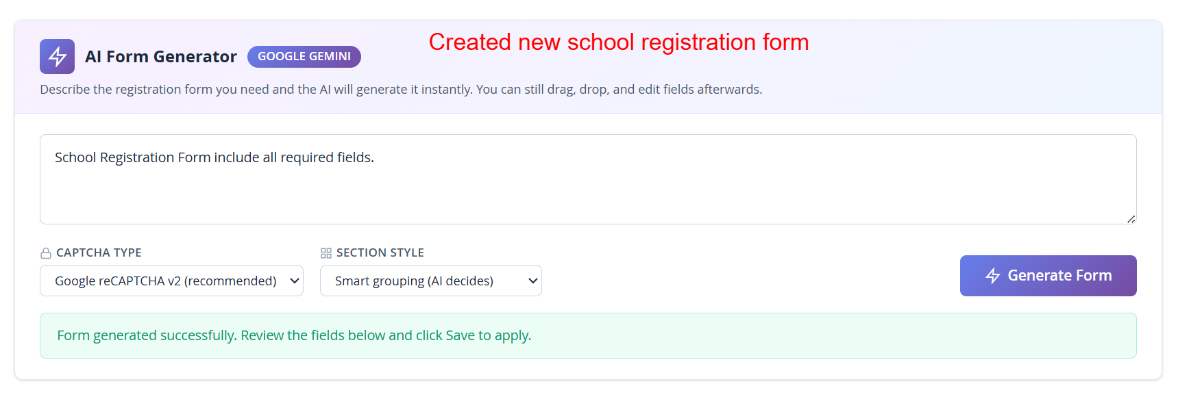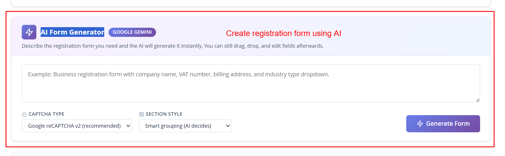 📷 [Screenshot: AI Form Generator]