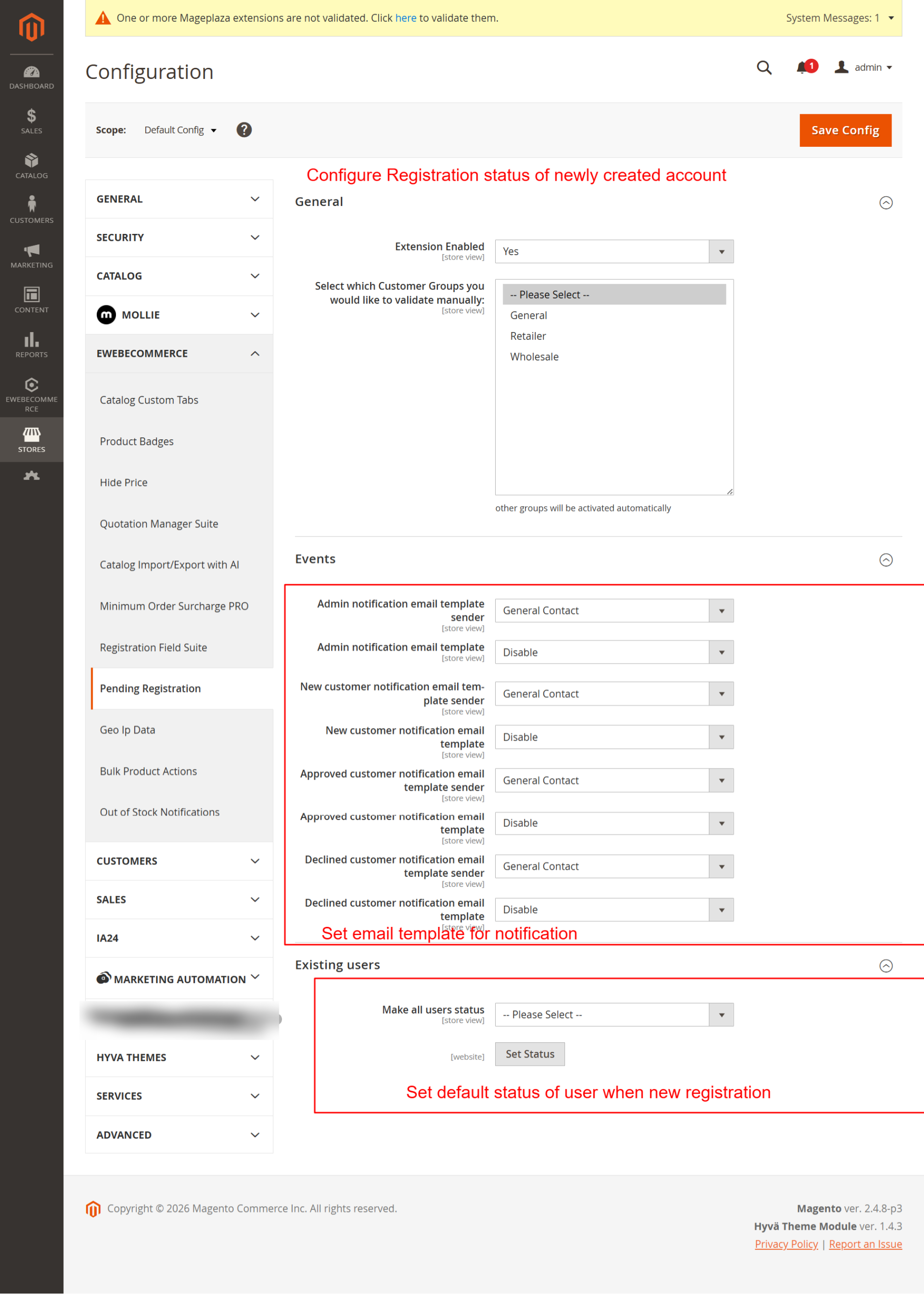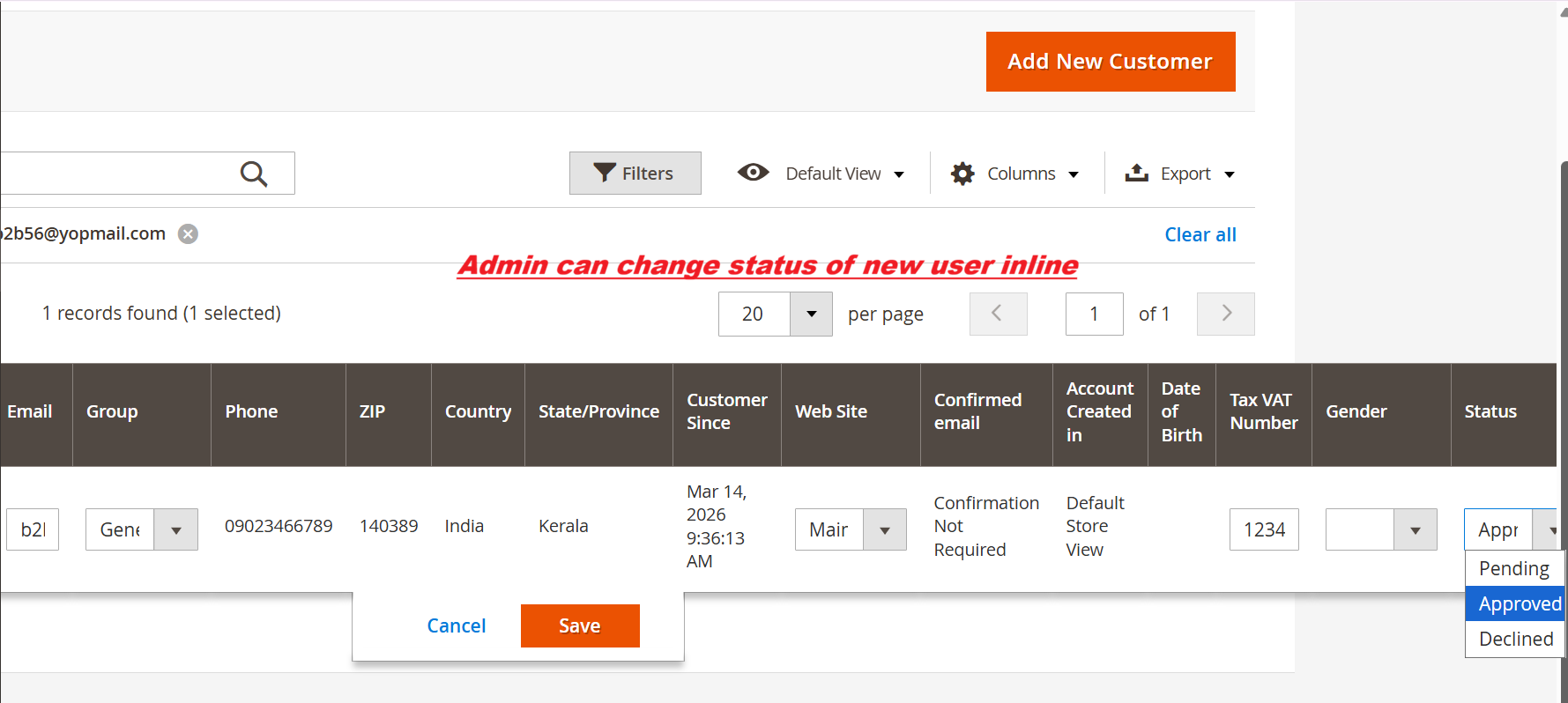 Manage customer registrations through a clear workflow that includes pending approval, acceptance, or decline, complemented by email notifications. This capability ensures only qualified users are added to your customer database.